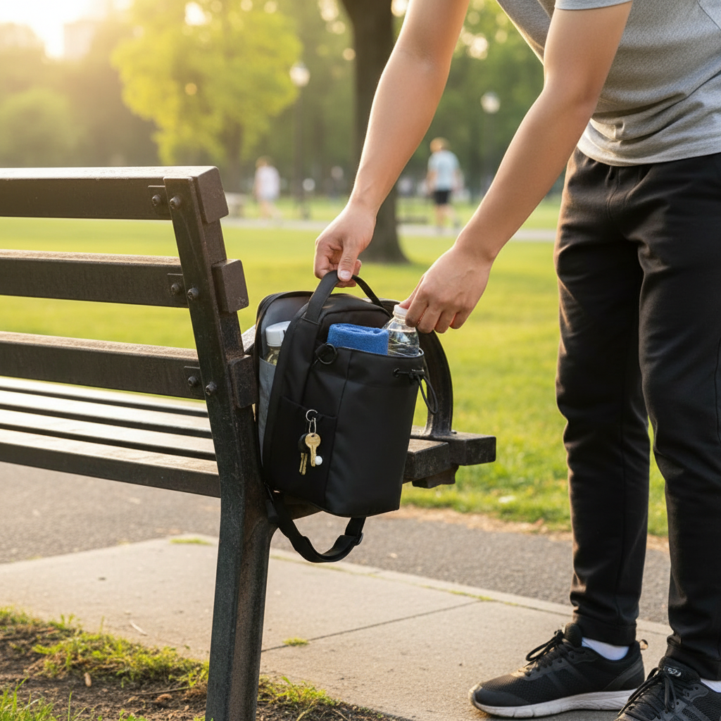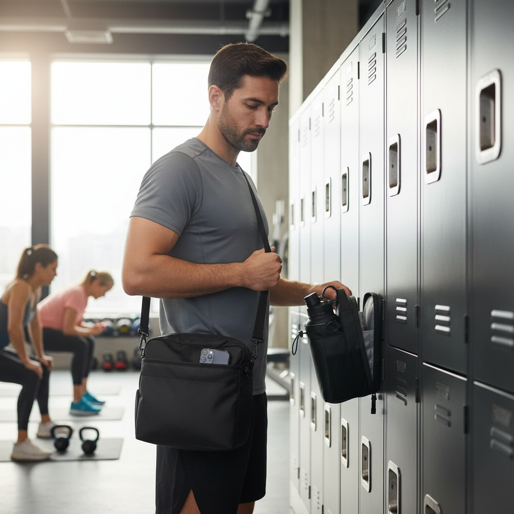 Capacité de 18L: téléphone, bouteille, serviette, clés et accessoires fitness.